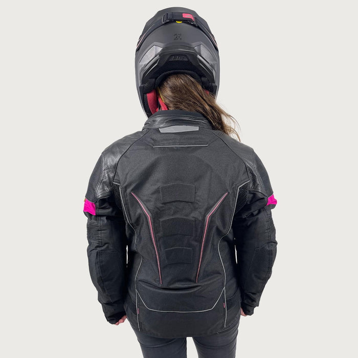 Chaqueta de moto confeccionada en telas MaxTec 600D y 1000D, Dublan 2500D de tejido pesado con paneles elásticos y detalles reflectantes para mayor movilidad y visibilidad. Cuenta con membrana impermeable sellada y forro interior de malla suave al tacto. Incluye forro térmico desmontable, panel extra de Soft Shell y bolsillos para celular y objetos personales. Sistema de ventilación con cierres impermeables y autobloqueo en pecho y espalda. Protecciones EVA removibles certificadas CE nivel 1 y 2 en hombros, codos y espalda. Alta visibilidad nocturna con reflectantes en frente, mangas y espalda. Cuello y puños de neopreno con cierre automático, ajuste en mangas y cintura para mayor confort y ajuste.